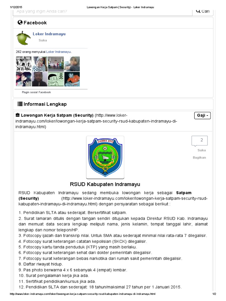 Itulah lowongan kerja satpam di berbagai daerah indonesia yang bisa dijadikan pilihan. Lulusan sma smk d3 s1 semua jurusan lowongan bank bumn cpns terlengkap dan terupdate dari sumber yang terpercaya. Lowongan kerja security bagi lulusan sd, smp, stm, smu, smk, smea terbaru. 7,071 likes · 41 talking about this. Dapatkan info lowongan kerja terbaru di emailmu.